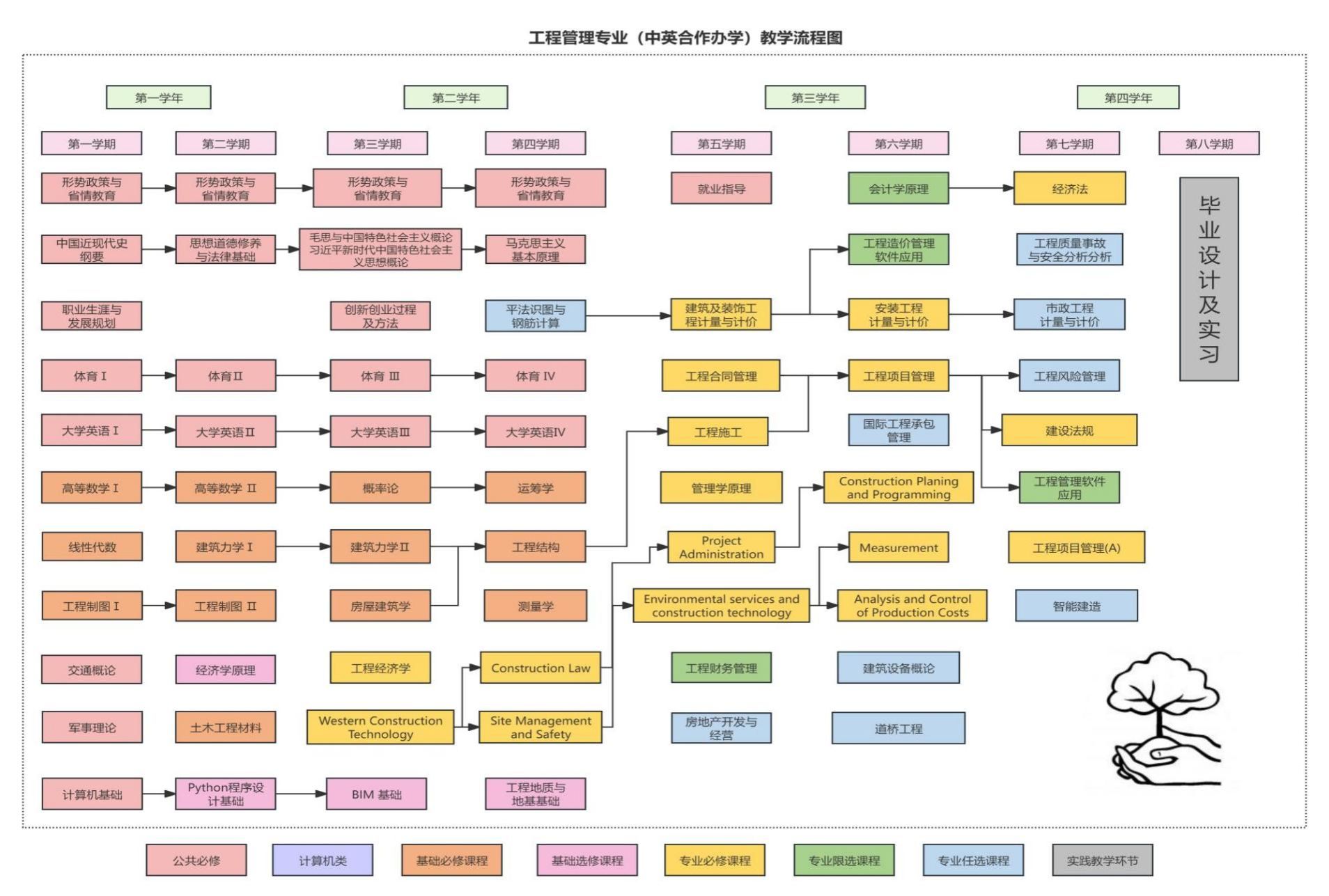 以习近平新时代中国特色社会主义思想为指导,以本科专业类教学质量国家标准、专业类指导规范、中外合作办学要求为依据,面向国内外工程管理领域,依托本校土木工程学科优势,培养家国情怀、国际视野,德、智、体、美、劳全面发展,掌握土木工程领域的技术知识以及与工程管理相关的管理、经济和法律等基础知识,具备较高的专业综合素养、较强的实践应用能力,获得良好的创新思维训练并具有初步的创新能力,能够严格遵守工程伦理,在国内外工程建设领域从事全过程工程管理的“懂技术、善经营、会管理、精商务、懂法守法”的高级专门人才。