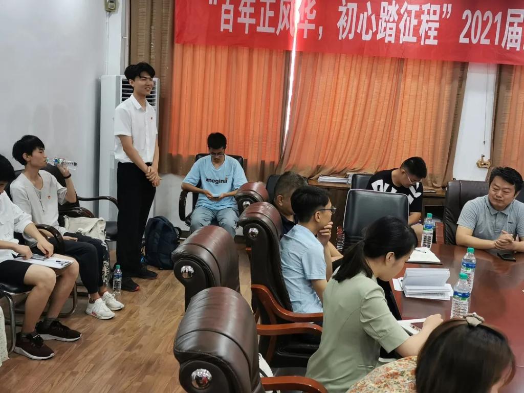 于6月17日上午9栋302会议室召开"百年正风华,初心踏征程"2021届毕业生党员座谈会。会议由院党委组织员万雯怡老师主持,院党委书记陈水生老师,副党委书记郑轶老师,学工办主任闫伟老师以及各学生党支部书记、毕业生党员代表出席本次会议。