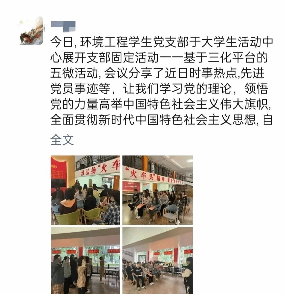 近日,环境工程学生党支部在三化平台开展一次以“认真学习党史,勇担时代使命”主题党日活动,活动内容主要有五项:微党课,微评论,微故事,微生活,微心声