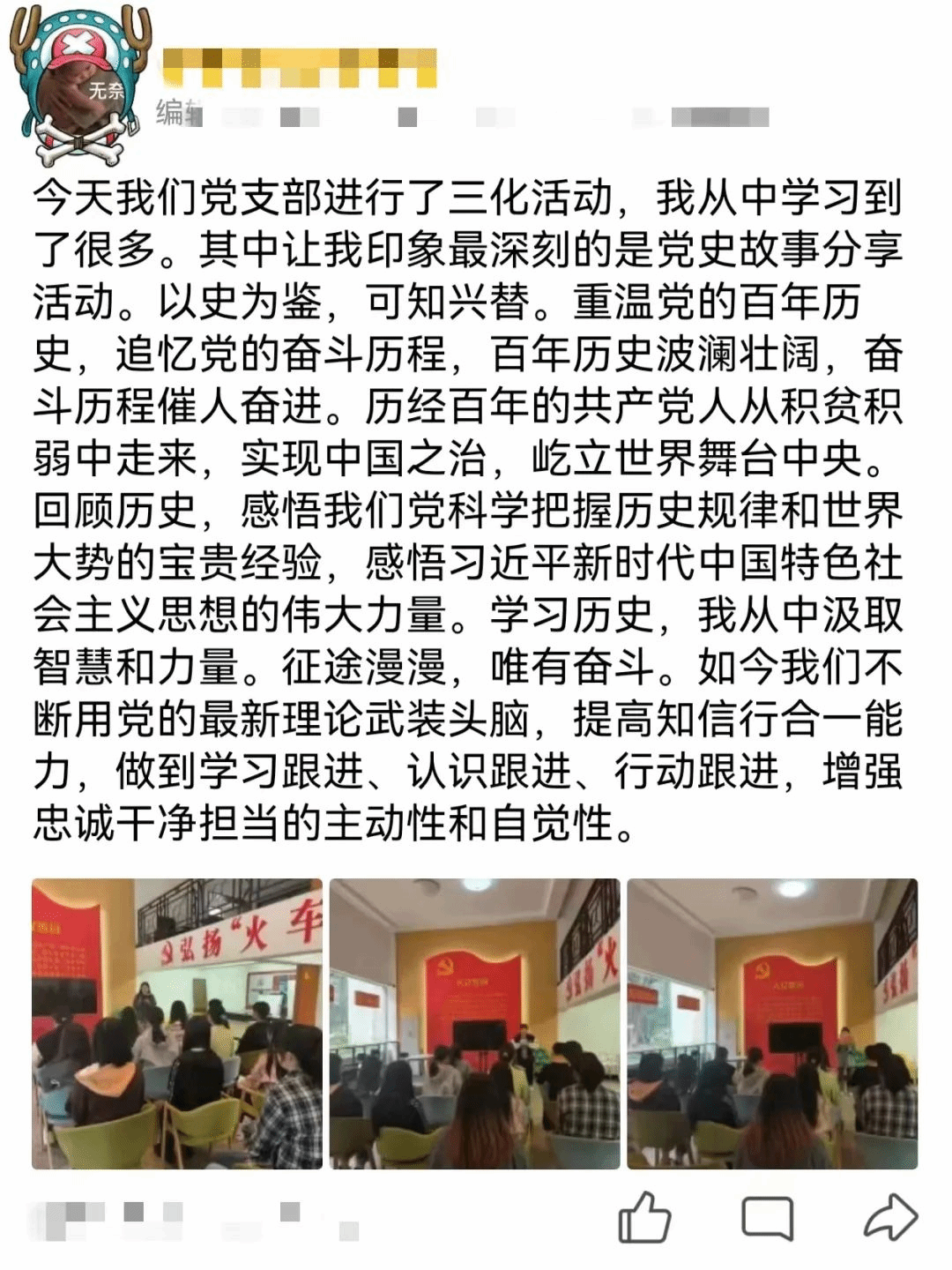 活动结束后,支部党员通过微信、微博等新媒体平台,用文字、视频等形式,讲述自己的所见所感所想,发表自己在三化平台学习的感悟。