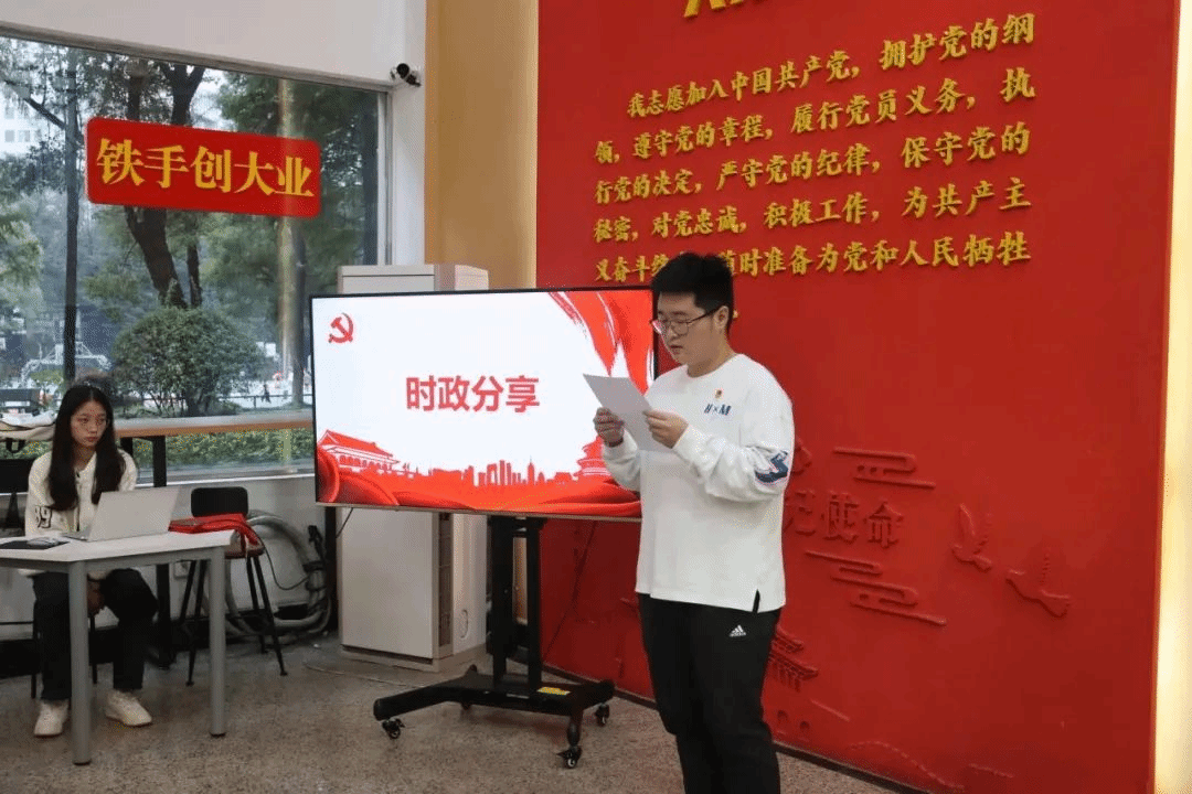 近日,给排水科学与工程学生党支部在大学生服务中心举办了一场主题为“思想铸魂强党性,实践创新建新功”的党日活动,在平台内开展“六个一”标准化组织生活,该活动共分为四个部分:一堂微党课、时政分享、观看红色影片和重温入党誓词。