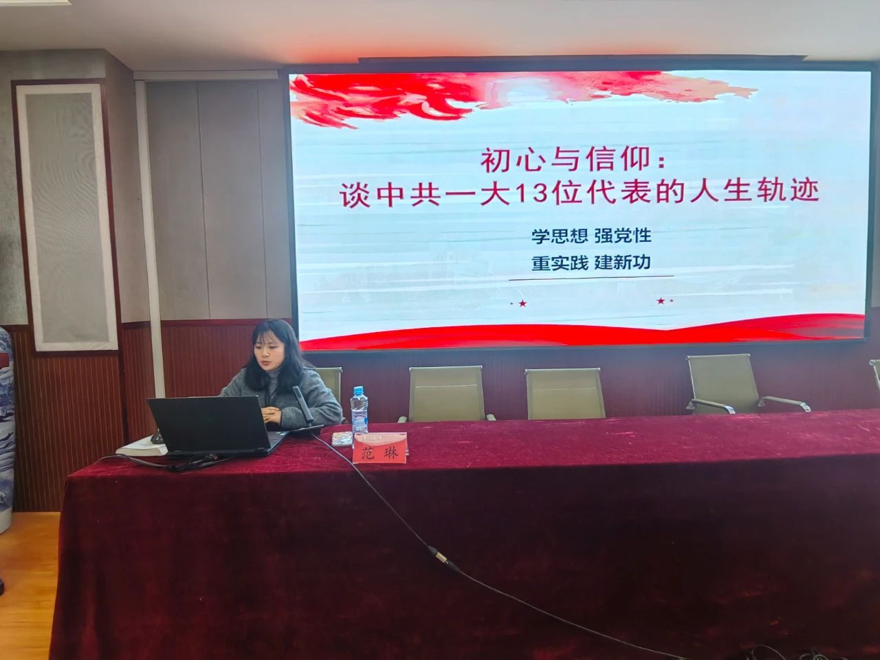 范琳老师从五四运动与中国共产党的诞生、中共一大代表的人生轨迹、中共一大代表命运的启示三个部分展开阐述。