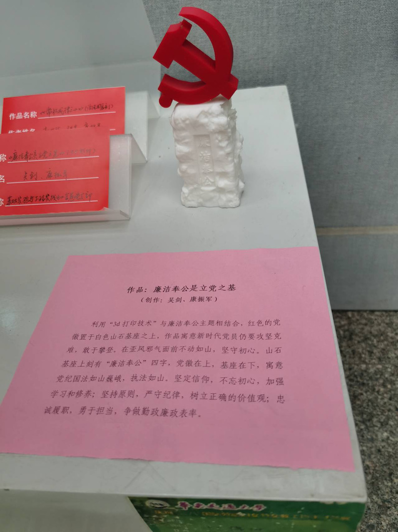 通过此次的参观,让我对于身为一名党员应该保持清正廉洁的作风有了更加深刻的认知。廉洁文化是党内政治文化和社会主义先进文化的重要组成部分,在党风廉政建设和反腐败斗争中处于基础性地位。在此次廉洁文化作品展览中,让我印象最为深刻的是一个名为《常怀戒律之心》的作品,这个作品是以党规党纪组合设计的党徽和莲花用激光工艺雕刻于戒尺上。在古代,学堂里的夫子常常手里会拿着戒尺。其实对于我们党员来说,每位党员的心中都应当拥有一把戒尺,时刻约束自己。常修从政之德,常怀律己之心,常思贪欲之害,常戒非分之想。