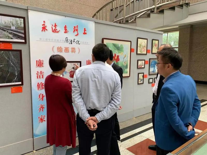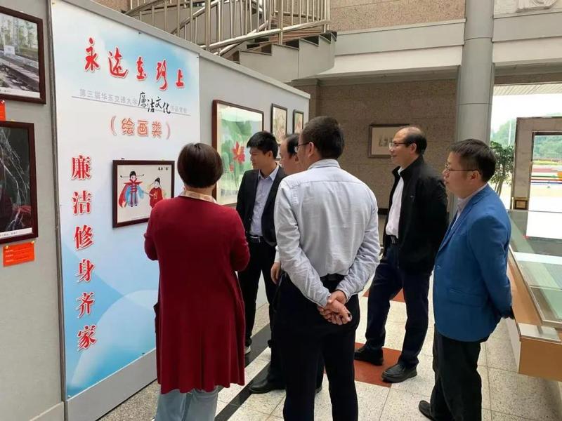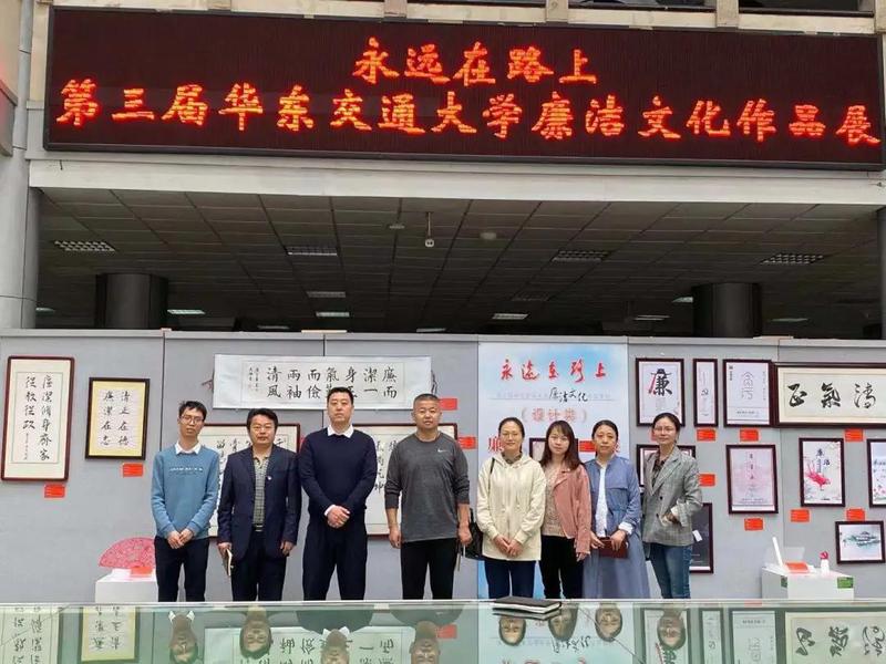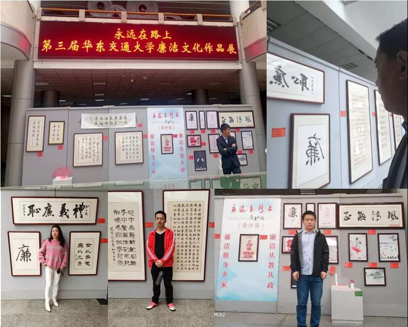 廉洁文化作品展在南区教8栋一楼大厅展出,这次展览共展出作品40件,包括书法、绘画、摄影和设计四个类别,全部由各基层党组织报送,学校广大师生创作。展览作品寓意深刻,集思想性、教育性、艺术性为一体。