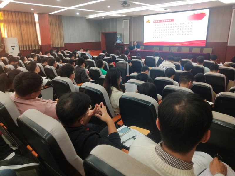 党委副书记郑轶在土建楼200会议室给本期入党积极分子上了一堂以《坚持党员标准,严格党员发展程序》为主题的党课。