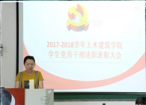 此次会议有六个议程。第一,全体人员起立奏唱国歌;第二,由学院各个支部的支部副书记述职;第三,由党员教育管理中心的主任、副主任、部长、副部长述职;第四,由万雯怡老师向学院各支部副书记颁布支部副书记聘书;第五,由万雯怡老师向16名学院优秀党员、3个优秀支部颁布荣誉证书;第六,由党员教育管理中心主任朱金贤向党员教育中心的优秀工作者和优秀干事颁奖。会议最后,由朱金贤带领全体人员宣读入党誓词。