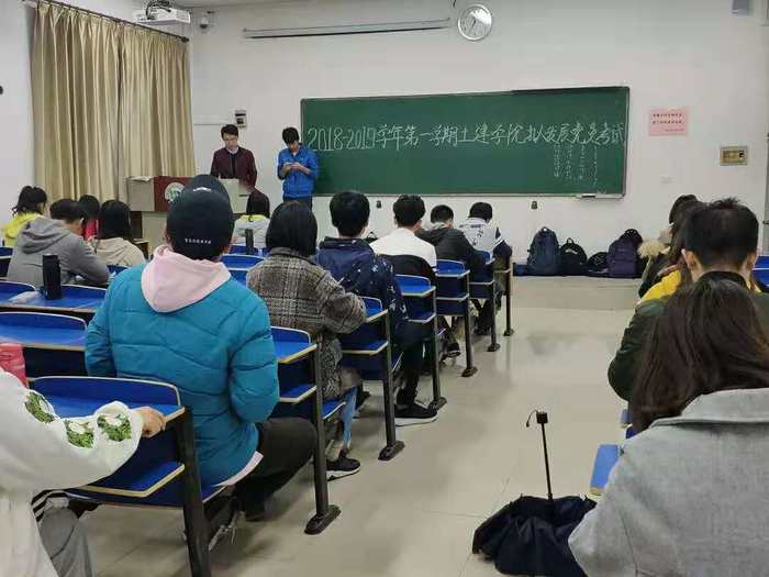 2018年11月20日, 2018-2019学年第一学期含羞草 拟发展党员考试在逸夫楼举行,全体拟发展党员参加此次考试。