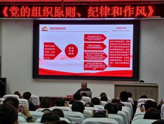 分党校第八期发展对象培训班学员讲授党课——《党的组织原则、纪律和作风》。