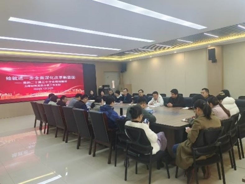 力学材料党政办教工党支部以进一步全面深化改革,绘就新时代高校教育事业新蓝图为主题,开展学习党的二十届三中全会精神主题党日活动。力学材料党政办教工党支部书记黄永虎主持会议,院党委书记刘永胜、副院长陈莘莘以及全体支部成员参加会议。