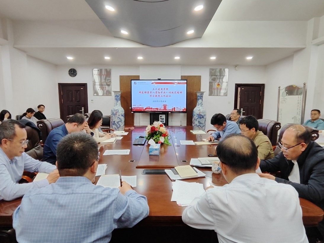 院党委副书记郑轶传达学习习近平总书记关于深入贯彻中央八项规定精神学习教育的重要讲话和重要指示精神、中央党的建设工作领导小组会议精神、省委常委会会议精神、上级业务培训会精神及校党委会精神。