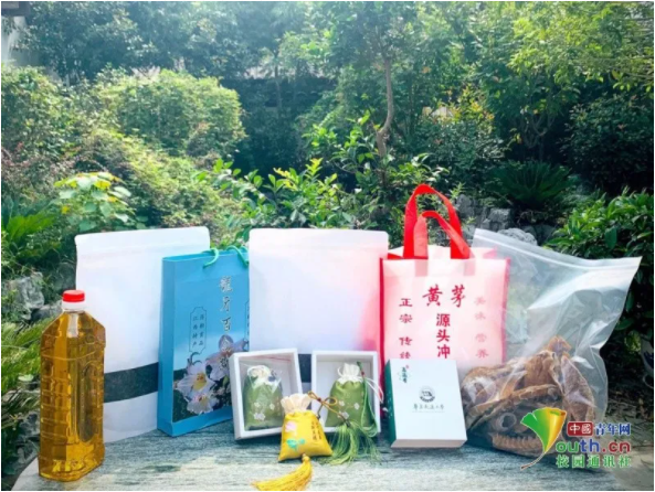亮相直播间的众多黄茅土特产。中国青年网通讯员 朱容辉
