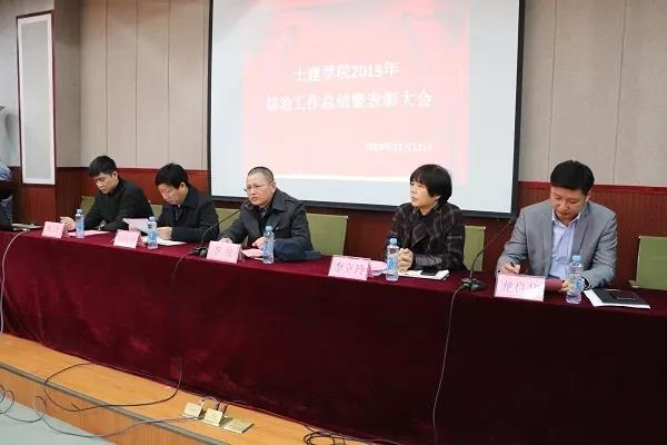 2019年综治工作总结暨表彰大会在土建楼200学术报告厅召开。校保卫处副处长李俊、院党委书记李立玲、院常务副院长胡锋平、保卫处干事杨岩应邀出席。全院教职工和学生代表参加了此次大会,大会由院党委副书记龙良华主持。