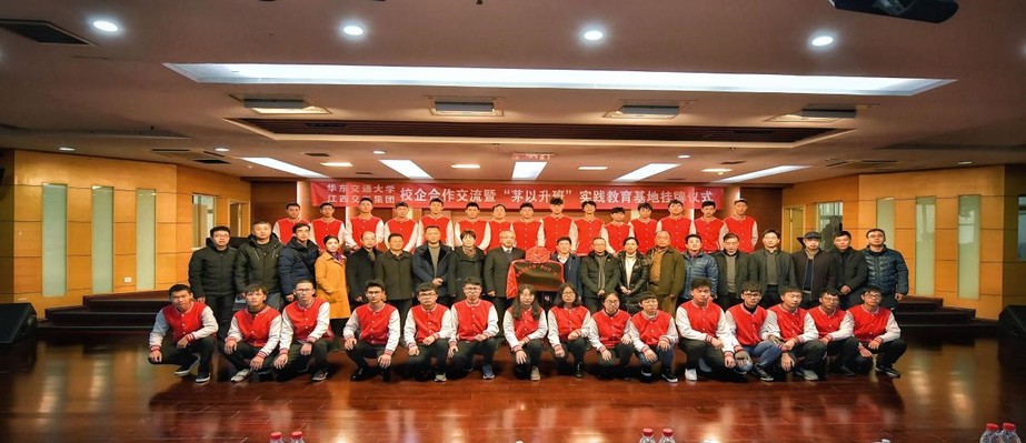 2018年12月28日,校党委委员、副校长陈梦成带队前往江西交通工程集团有限公司举行“茅以升班”实践教育基地揭牌仪式,并就校企合作事宜进行进一步交流。省交通运输厅党委委员、总工程师胡钊芳,省高速集团党委委员、总工程师邝宏柱,交工集团董事长、党委书记徐志华,江西交通路桥公司总经理杨文出席揭牌仪式,江西交工集团总经理张诚主持揭牌仪式。