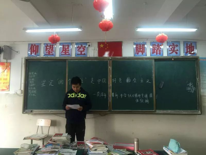 “宣讲所面对的是中学生,大家都知道,在当下的应试教育中学生想要全方位地理解十九大精神市不可能,他们也更没有时间用在十九大精神的研究上,我本次有关十九大精神的宣讲目的就是更加贴近他们生活实际、让他们把十九大精神内涵用到他们的学习生活中去,增强他们的民族自信感与自豪感,使他们觉得自己未来的幸福是靠自己拼出来的,增加他们学习的动力。”张灏鹏如是说。