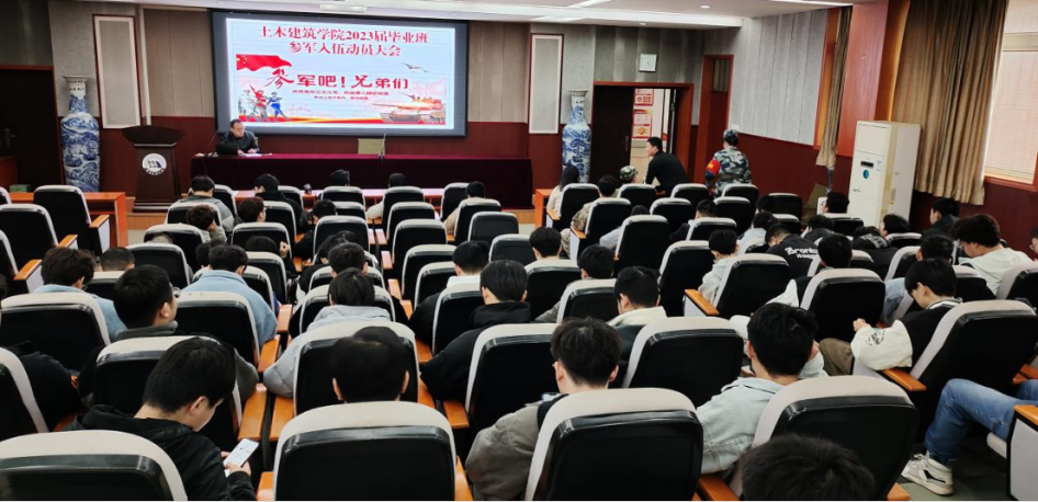 为贯彻落实党中央、中央军委关于国防建设的系列部署,支持国防建设,为军队凝聚优秀人才,含羞草 3月24日在土建楼200会议室组织召开2023届毕业生应征入伍动员大会。参加大会的有含羞草 党委副书记郑轶老师、校武装部王聪和王玉军老师、毕业班全体辅导员、毕业生、参军退役复学学生代表等,本次大会由学院征兵联络员陈科楼老师主持。