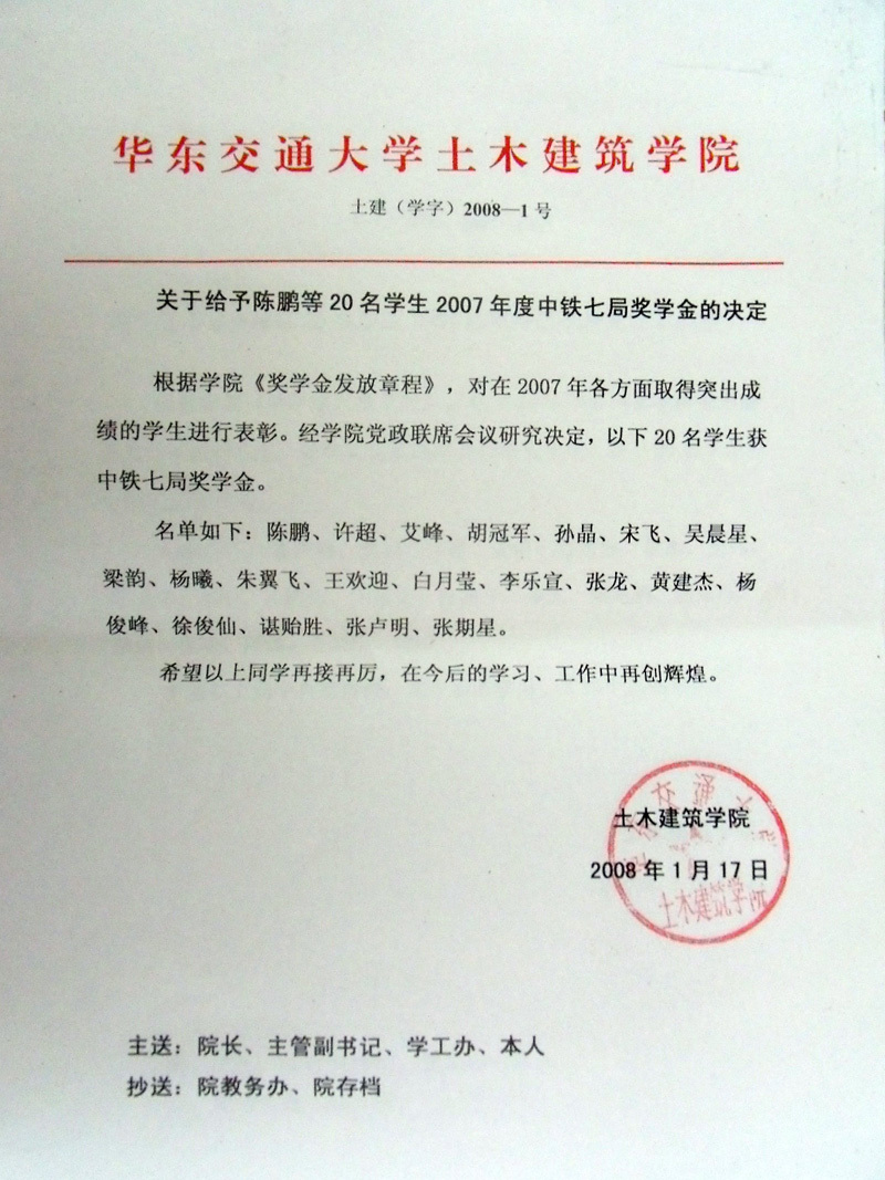 2007年教育基金奖励名单