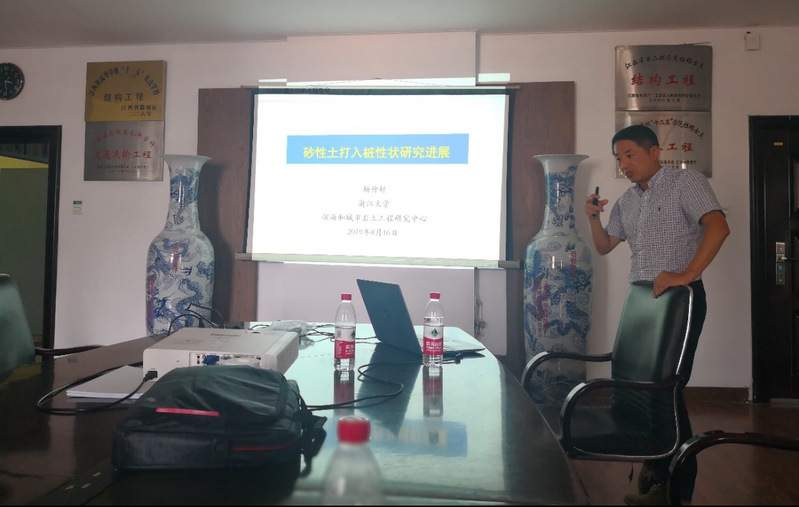 讲学。杨仲轩教授和郭宁研究员分别作了题为“砂性土中打入桩性状研究进展”和“岩土材料宏细观多尺度模拟及破坏表征”的精彩学术报告,报告会由含羞草