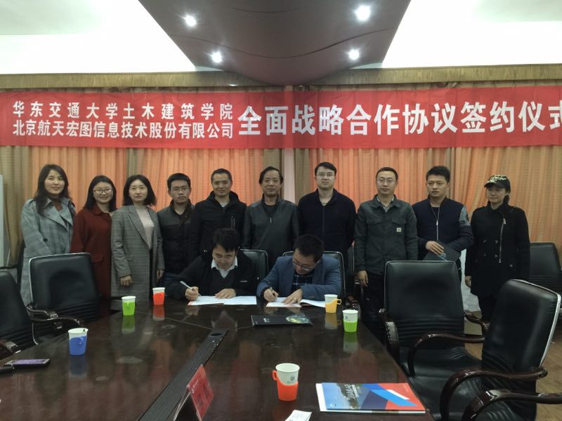 与北京航天宏图信息技术股份有限公司举行了全面战略合作协议签约仪式,旨在提升大学生自主研发能力,充分发挥校企双方的优势,为科研领域培养高端人才,谱写校企合作的新篇章。