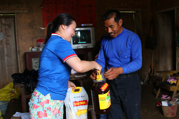 走访过程中,山路崎岖,烈日炎炎。院党委一行共前往三户贫困家庭开展扶贫慰问工作,仔细了解了各贫困户的家庭情况,详细询问了其生活情况、身体状况和收入情况,并向各贫困户送去了米、油、衣物等生活物资。