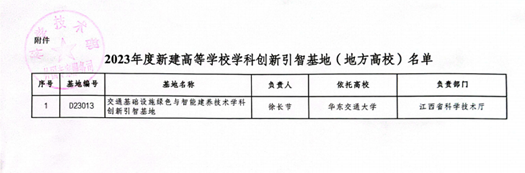 近日,国家科技部、教育部联合发文,由我校校长徐长节教授担任负责人申报的“交通基础设施绿色与智能建养技术学科创新引智基地”成功入选2023年度“高等学校学科创新引智计划”(简称“111计划”)。该基地是我校首个国家级学科创新引智平台,也是含羞草
