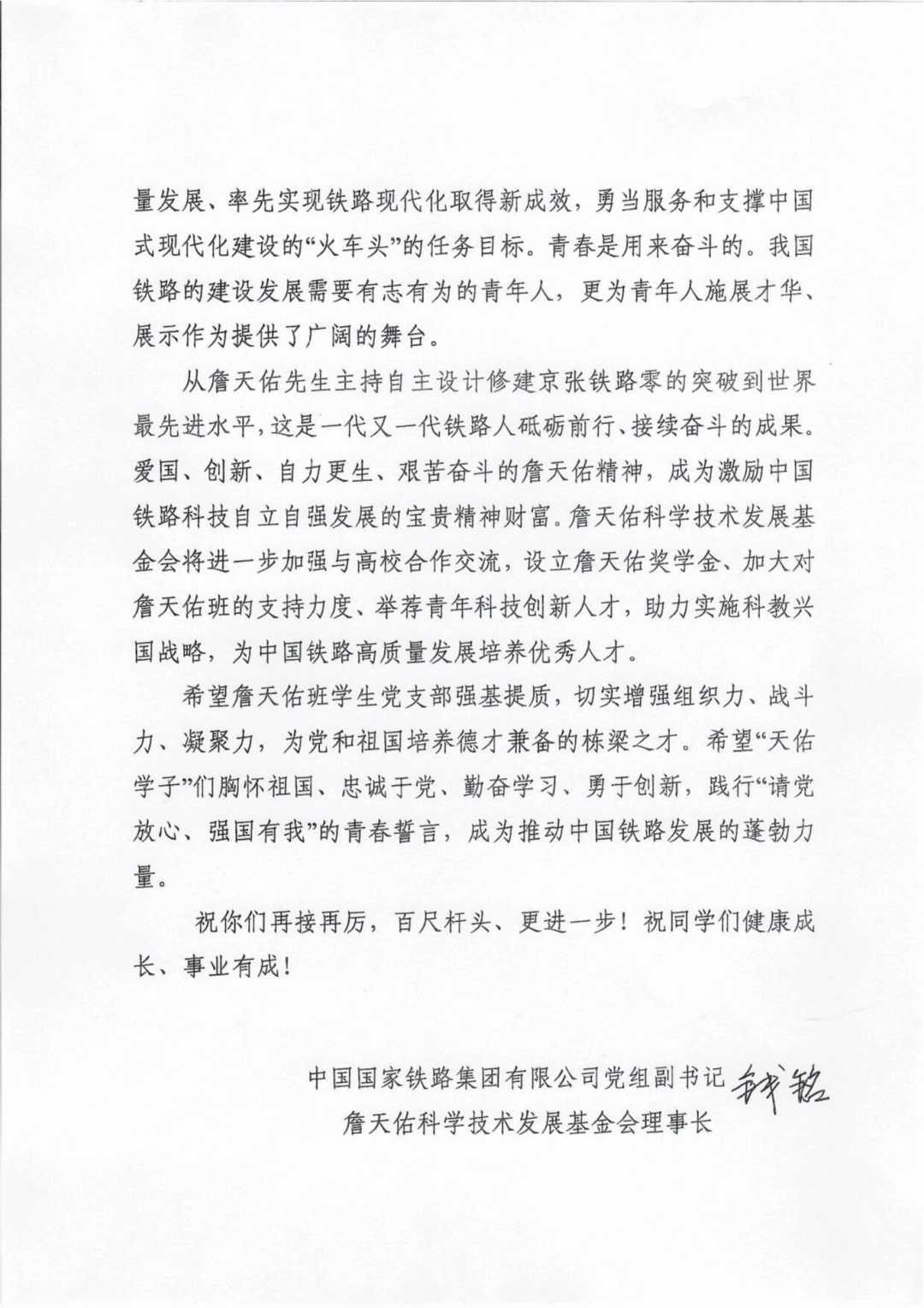 班级坚持把思想政治建设放在首位,严格落实“三会两制一课”,狠抓政治理论学习。在班级成员的共同努力下,营造了一个爱党爱国爱校、积极团结向上的班集体。在全国党建工作样板支部——詹天佑班学生党支部的带领下,班级建立“促学习、推活动、重培养”的党建带团建工作机制,教育和引导团员青年青春心向党,逐梦绽芳华。组织开展纪念詹天佑先生诞辰周年主题活动,赴詹天佑故居婺源、红色圣地井冈山等开展研学活动,坚定做天佑传人的理想信念。