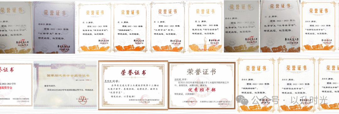 班级学生双创、学科竞赛获奖和学术科研成果证书(部分)