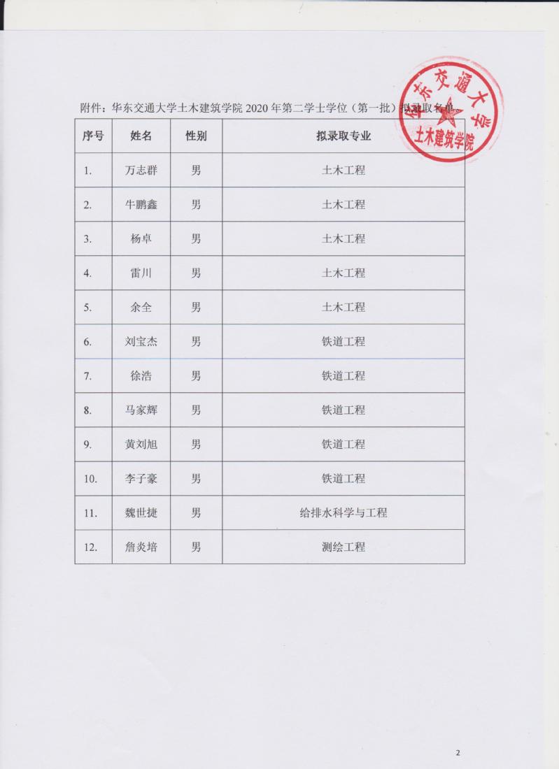 含羞草 2020年第二学士学位招生(第一批)拟录取名单