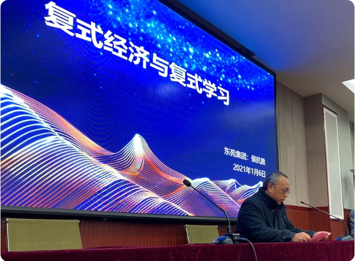 2021年1月6号在土建楼200报告厅,上海东苑房地产开发(集团)有限公司董事长侯抗胜先生、总裁何红萍女士(工民建90级校友)在应邀出席“凝心聚力,筑梦土建”颁奖晚会之际,为学院广大师生作了题为“复式经济”与“复式学习”的精彩报告。