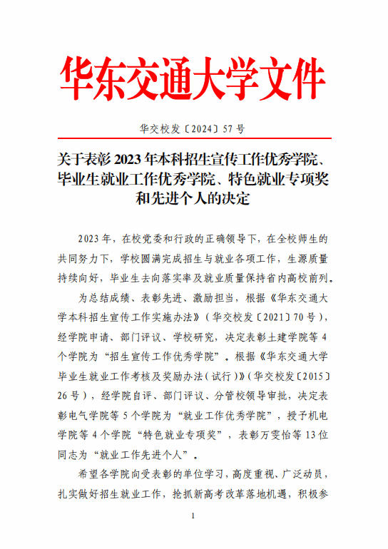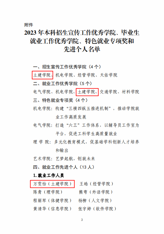 招生与就业工作取得佳绩,获评2023年本科招生宣传工作优秀学院、毕业生就业工作优秀学院,获评“宏志助航计划”职业生涯咨询院级特色工作室,万雯怡、麻宏强荣获2023年就业工作先进个人称誉。