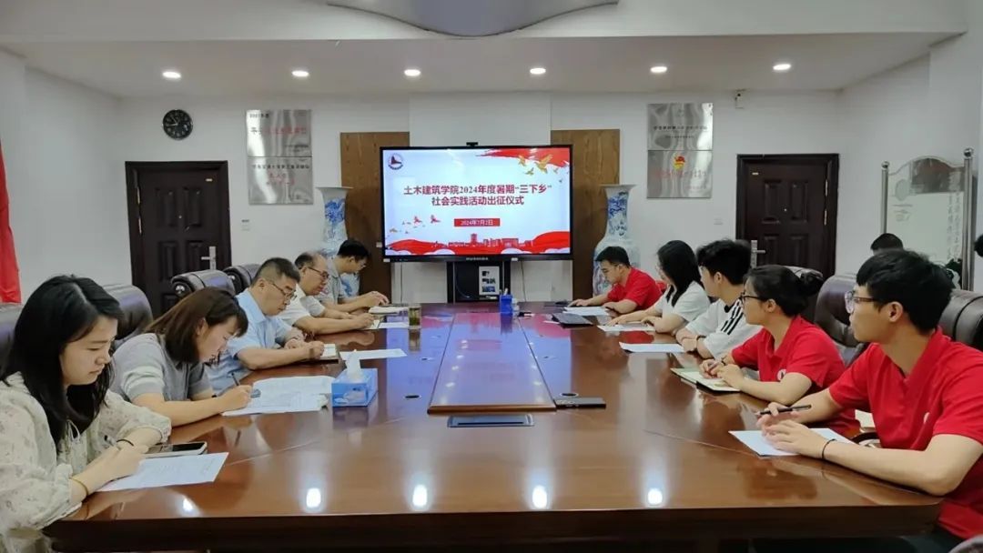 于教9栋302会议室隆重举行2024年度暑期“三下乡”社会实践活动出征仪式。