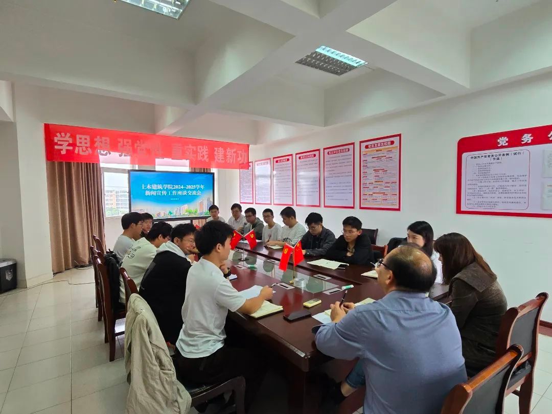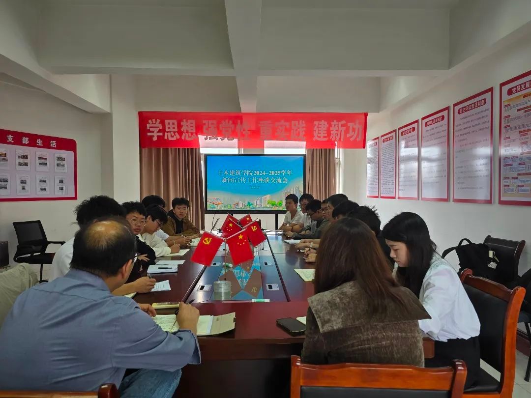宣传工作水平,10月16日上午十点,土建学院于土建楼500召开新闻宣传工作座谈交流会。院党委副书记郑轶,学工办主任兼团委书记万雯怡,学工办副主任、团委副书记贺慧文,融媒体中心负责老师黄伟豪出席会议。研会宣传部负责人,融媒体中心主任及各部长与会。
