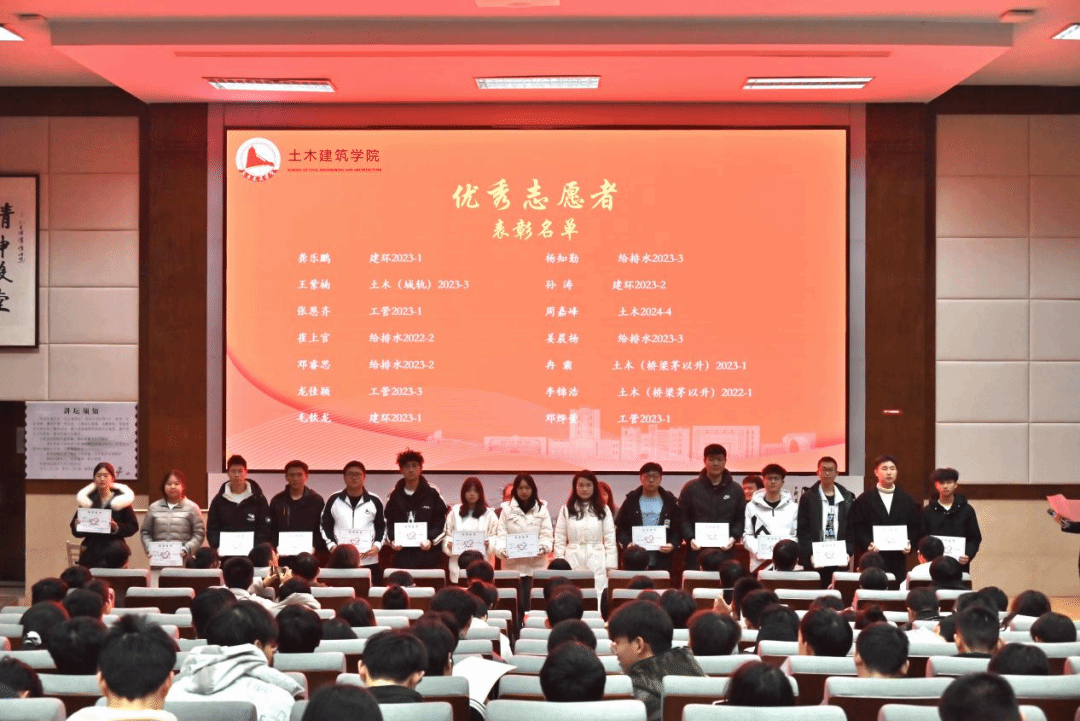 为总结成绩,表彰先进,更好地发挥优秀学生骨干的模范带头作用,推进学院学团工作再创佳绩,并带动优良学风的形成,12月12日晚,土建学院于南区图书馆202召开2024年度“砼心圆”优秀学生骨干表彰大会暨学风建设表彰大会。土建学院党委副书记郑轶,学工办主任兼团委书记万雯怡,学工办副主任兼团委副书记华罗娟、贺慧文,兼职团委副书记严安迪,融媒体中心负责老师黄伟豪出席会议。大会由张富乐、王嘉昱同学主持,土建学院团委、学生会全体成员以及受表彰同学与会。