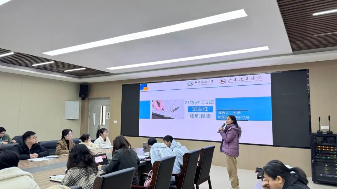为切实加强辅导员及班主任队伍建设,促进辅导员与班主任工作相互交流、相互借鉴,提升业务水平,形成更大的育人合力,12月23日下午,2024年度辅导员及班主任工作述职会在32栋321室举行。校考核工作领导小组成员、学工处学生资助管理中心主任郑洁,土建学院党委书记刘永胜、副院长麻宏强出席,院党委副书记郑轶主持会议。学院全体辅导员及11名班主任代表参加述职答辩。