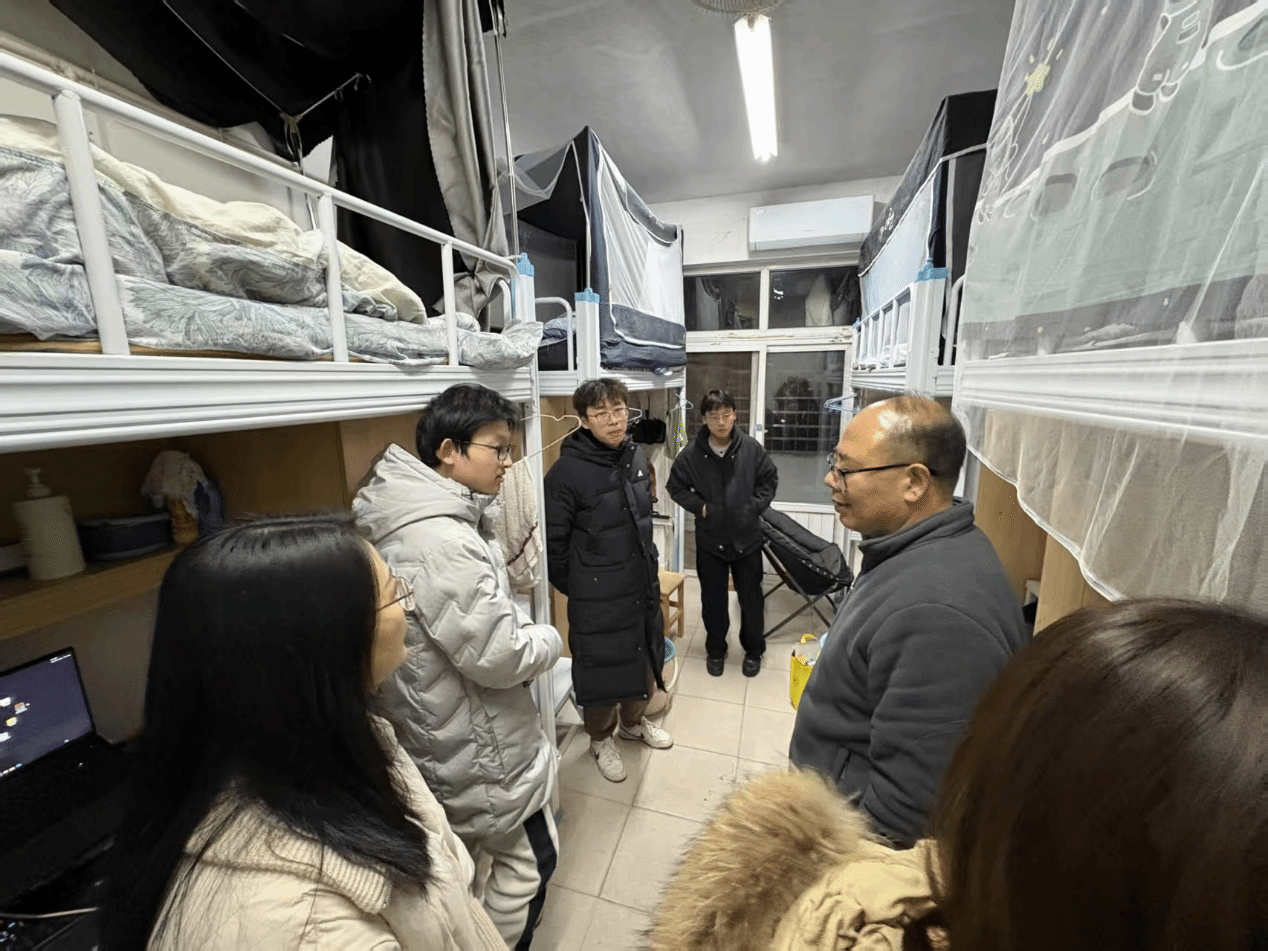 走访中,学院领导、老师着重检查了寝室卫生情况及安全设施,对同学们提出的学习、生活等各方面问题一一记录并给出了切实可行的解决方案。