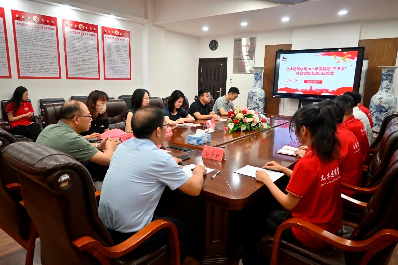 党委书记刘永胜、党委副书记郑轶、团委书记万雯怡、团委副书记华罗娟、贺慧文,兼职团委副书记严安迪,双创项目指导老师汪楚乔及“三下乡”全体成员参加此次仪式,会议由“三下乡”社会实践活动带队老师黄伟豪主持。