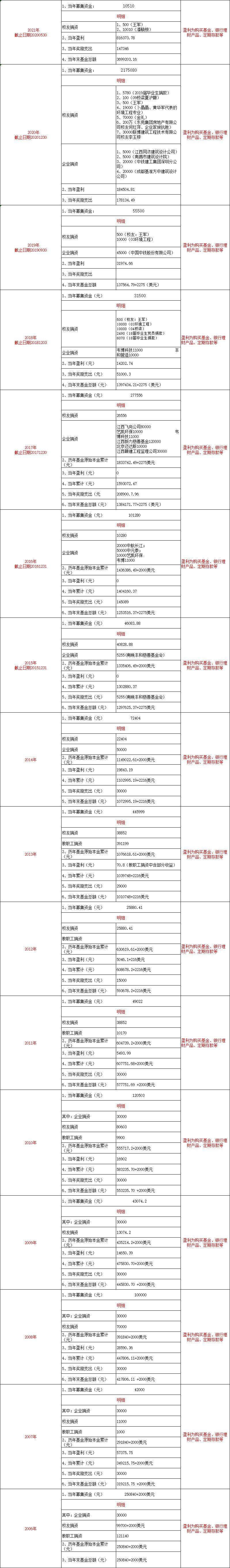1、历年基金原始本金累计指:基金会所募集到的基金总和,等于历年募集资金的总和;